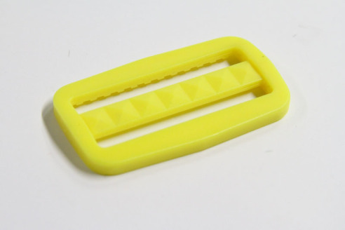 Schiebestegschnalle aus Kunststoff | 3-Steg Versteller | Leiterschnalle | 50 mm Durchlass | hauseigenes Produkt | passend zur Koffergurtschnalle | zitronengelb